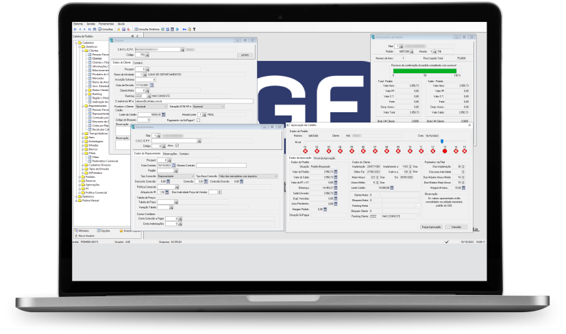 Agiliza e simplifica o processo da gestão comercial (políticas comerciais, aprovações de crédito, faturamento etc.).