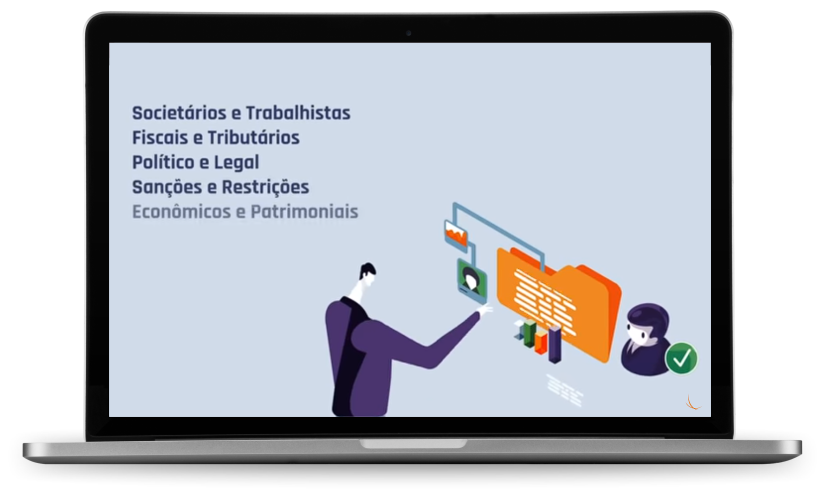 Nossa solução inclui informações jurídicas e reputacionais sobre empresas e pessoas, como processos judiciais, redes de relacionamento, quadros societários e de administradores (QSA), entre outros. Essas informações podem ser usadas para aperfeiçoar o processo de onboarding de clientes, identificar conflitos de interesse, fazer análise reputacional e análise de crédito.